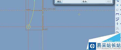 7、然后就是畫截面啦,我們以兩條中心線的交點為圓心畫一個如圖所示的圓,然后再點擊打勾。