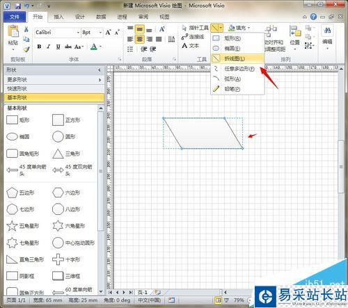2、點擊上方“折線圖”工具,在編輯區繪制一個封閉的“平行四邊形”,如圖所示