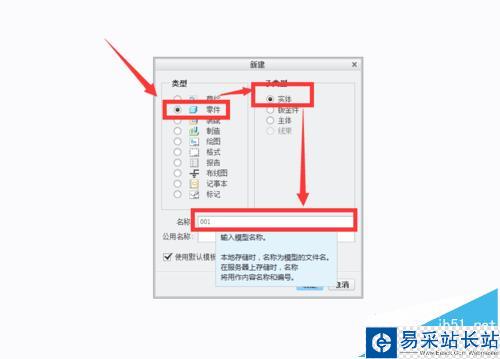 2、選擇“零件”——“實體”,在名稱欄中輸入你要保持的名字
