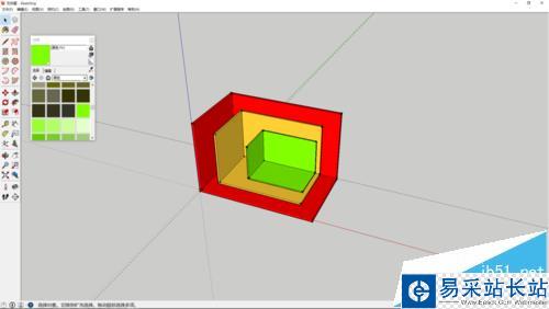 7、使用材質(zhì)工具進(jìn)行填充顏色。效果如圖。