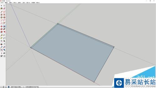 2、使用卷尺工具拉出兩條參考線,用直線工具在矩形面上繪制如圖兩條線。