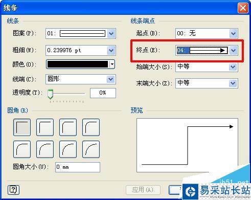 6、在“線條端點”選項中,找到“終點”選項,如下圖所示;