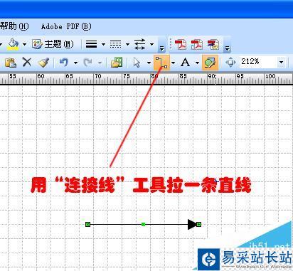 2、在工具欄中找到“動態連接線”,在畫圖界面中拉一條直線,將出現一條帶箭頭的直線,如下圖所示: