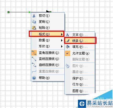 4、點擊選中點線條,然后點擊鼠標右鍵,在下拉菜單中,依次選擇“格式”-“線條”,如下圖所示: