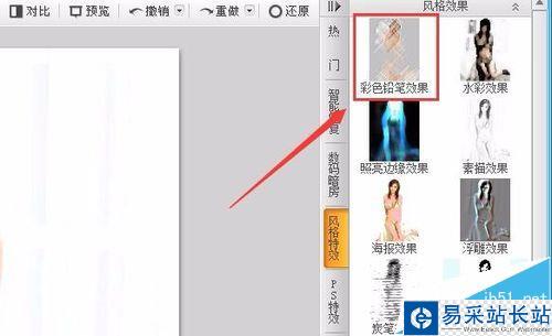 6、點擊風格特效選項,進入風格特效的選擇界面區,在這個界面內找到彩色鉛筆效果選項,如圖所示: