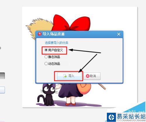 6、在“飾品”欄找到“導入飾品”,選擇“用戶自定義飾品”,從而導入飾品。