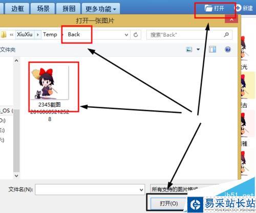 5、點擊窗口界面右上角的“打開”,找到并打開剛才保存的背景圖片。