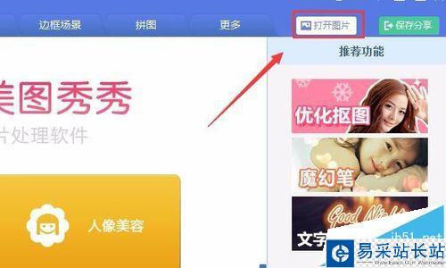 2、在這個界面內找到打開圖片選項,如圖所示: