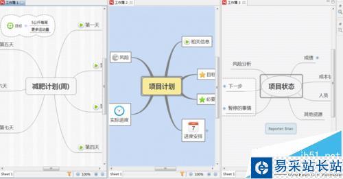 我們?cè)赬Mind內(nèi),能夠?qū)Ω鞣N視圖進(jìn)行位置和大小的自由調(diào)整,還可以建立多個(gè)工作簿同時(shí)進(jìn)行操作,假設(shè),我想要同時(shí)在一個(gè)界面中瀏覽比較這幾個(gè)導(dǎo)圖時(shí)該怎么辦呢。