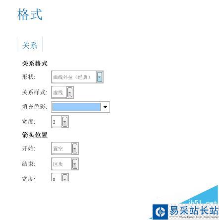 3、我們點擊格式選項后,會跳出格式對話框,在這里你可以對關聯線的樣式、形狀、填充顏色、粗細、箭頭的設置等進行修改。