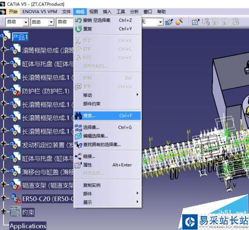 1、在裝配模塊下,選擇菜單“編輯”——“搜索…”
