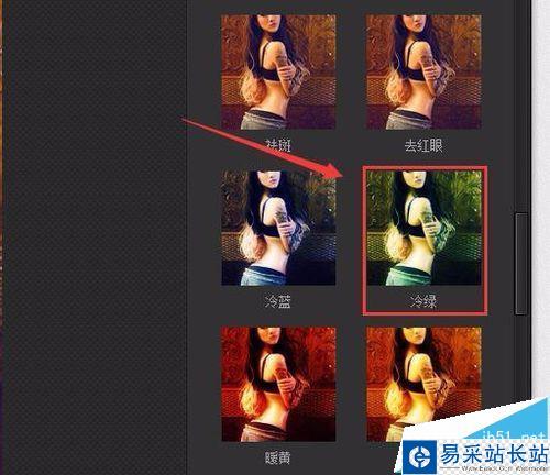 6、點(diǎn)擊數(shù)碼暗房選項(xiàng),在數(shù)碼暗房的選擇區(qū)域里找到冷綠效果選項(xiàng),如圖所示: