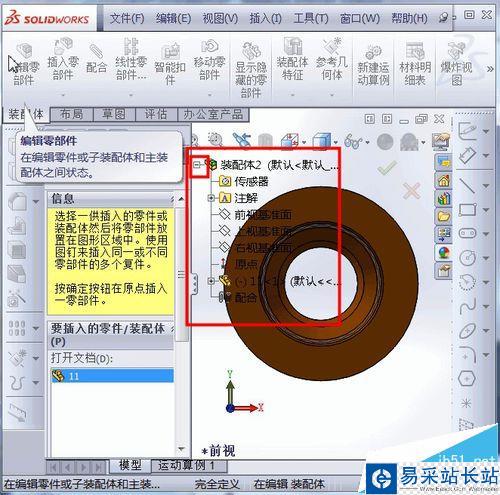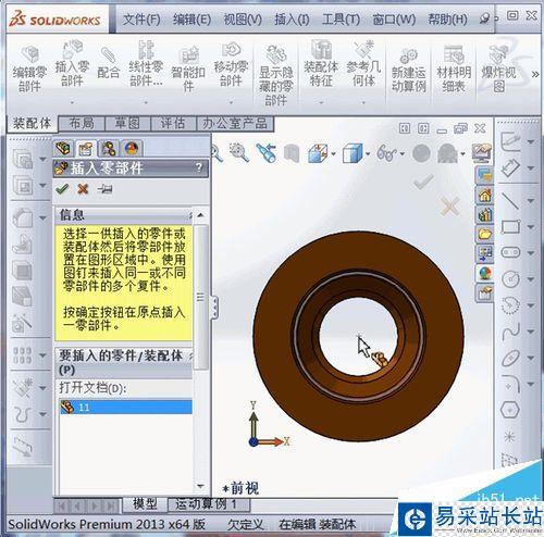 2、雙擊"零件11",將鼠標(biāo)移動(dòng)到視圖窗口內(nèi),但不要點(diǎn)擊,如圖所示