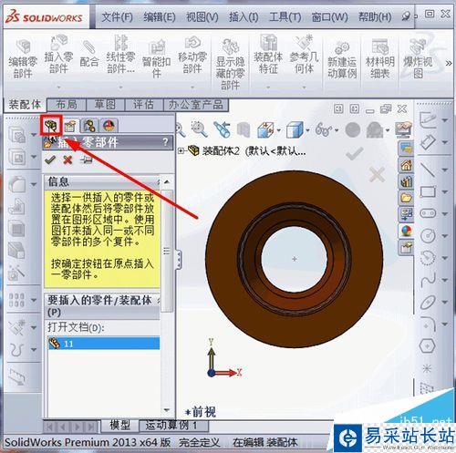 1、進(jìn)入裝配體模式,準(zhǔn)備插入第一個(gè)零件,如圖所示