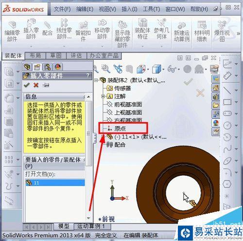 將教你在solidworks裝配體模式下,如何使第一個(gè)零件圖的原點(diǎn)與裝配體坐標(biāo)原點(diǎn)重合。