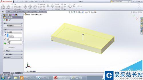 3、點擊“拉伸”命令,給定深度“50”,那么一個三維塊體就做好了,然后點擊對號就完成了。