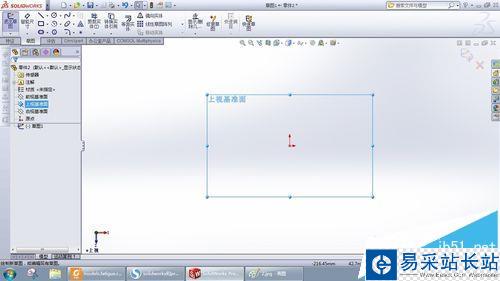 2、在上視圖上右鍵,點擊“草圖繪制”命令,開始繪制草圖,為了重點說明怎么添加材料,本經驗隨便畫一個邊角矩形,標注尺寸如圖所示,然后退出草圖。