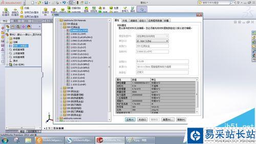4、在設計樹上,右鍵點擊“材質”,然后選擇“編輯”材料,隨便選擇一種材料然后點擊“應用”,模型快的材料就設置成功了。