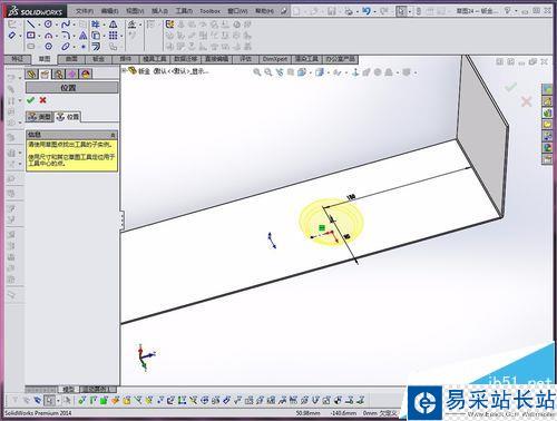6、點擊【位置】按鈕,進入草圖,選擇【只能尺寸】命令,編輯工具體的位置。編輯完成后點擊對號確定