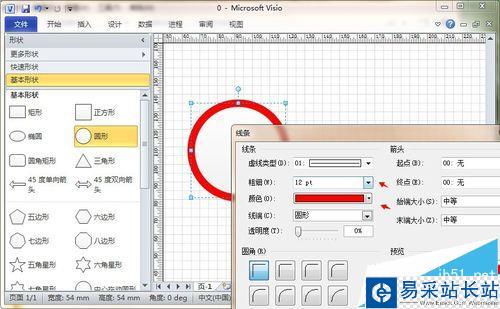 3、然后,單擊鼠標(biāo)右鍵,選擇“格式”-“線條”選項(xiàng),將圓形設(shè)置為純紅色,稍微較粗一點(diǎn),如圖所示。