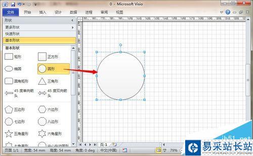 2、接著,從左側(cè)形狀欄里拖入一個“圓形”,如圖所示。