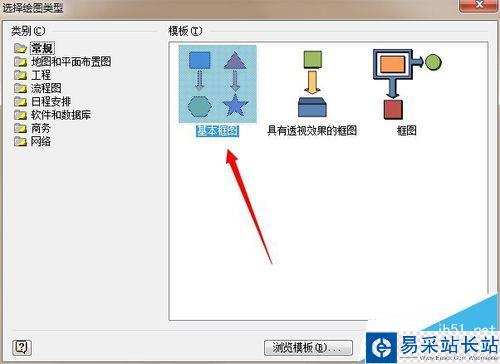 1、首先,打開visio軟件,新建一個“基本框圖”工程文件,如圖所示。