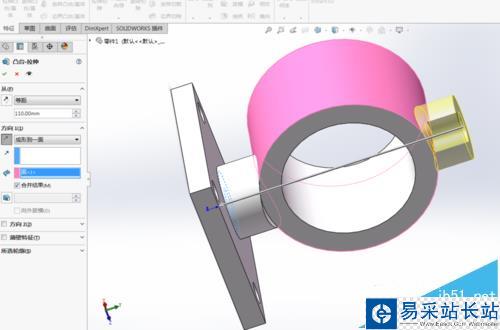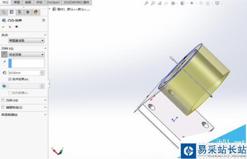 5、繪制完成后,新建拉伸特征,拉伸距離為50mm