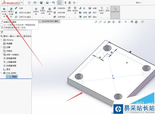 3、然后選擇拉伸實體,就出現如圖所示的底座。