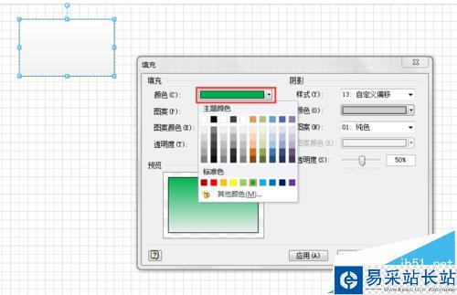 5、點擊填充設置界面中的顏色下拉欄選中第一種自己想要的填充色