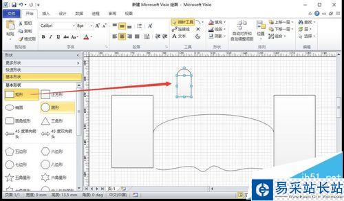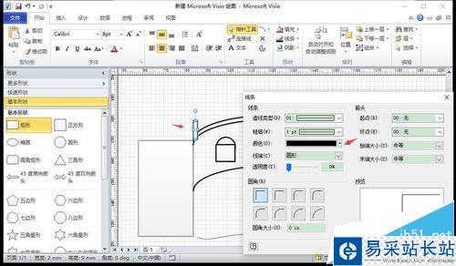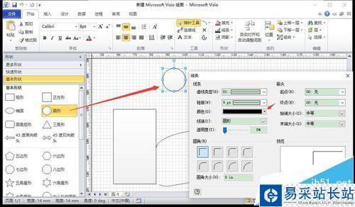 再從左側形狀欄拖入一個“圓形”,并調整其線條屬性為“黑色”,如圖所示。
