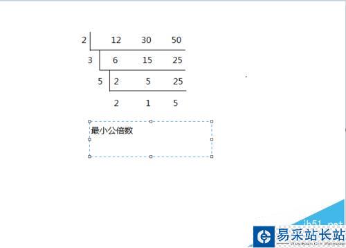 5、最后一個文本框輸入結論,先輸入漢字:最小公倍數(shù)。
