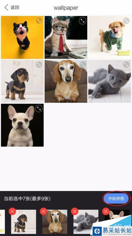 2、根據(jù)個(gè)人喜歡選取自己喜歡的圖片(最多不能超過九張),點(diǎn)開始拼圖