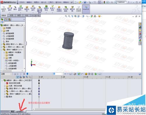 7、這樣模型就建好了。下面開始做動(dòng)畫,點(diǎn)擊運(yùn)動(dòng)算例1,進(jìn)入動(dòng)畫制作界面。