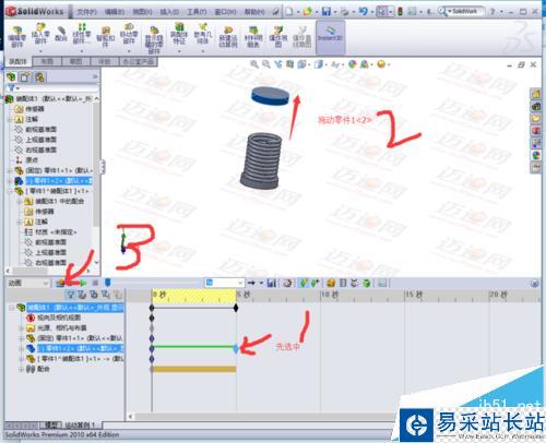 一個(gè)很經(jīng)典的例子,利用solidworks2010動(dòng)畫制作彈簧的壓縮效果。很多網(wǎng)友把自己做的效果發(fā)到了網(wǎng)上,當(dāng)沒有說明怎么做,給人一種可遇而不可及的尷尬,其實(shí)這是一個(gè)非常簡單的模型,需要在裝配體里面實(shí)現(xiàn)。話不多說了,進(jìn)入主題。