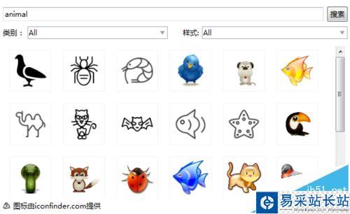 2、在搜索欄中輸入你想查找的圖標進行搜索。(比如:輸入animal----搜索)