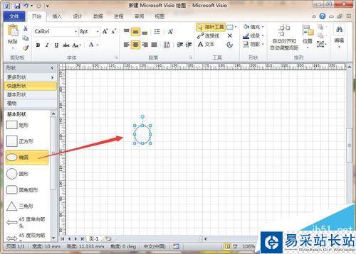 2、從左側“形狀欄”中拖入一個“橢圓形”,并調整其大小和形狀,如圖所示。