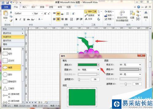7、然后按照上述方法,將其填充顏色設置為“純綠色”,如圖所示。