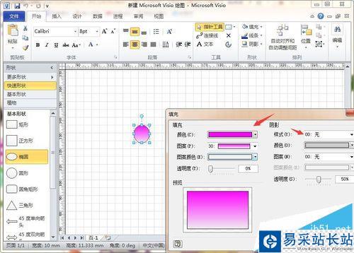 3、單擊鼠標右鍵,選擇“格式”-“填充”,將其填充顏色設置為“漸變的紫色、無陰影”,如圖所示。