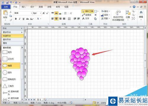 5、將這些小橢圓形按照葡萄的樣子依次排列開來,如圖所示。