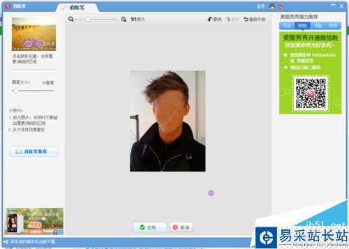 2、點擊消除筆,給人物臉的部分進行涂抹。