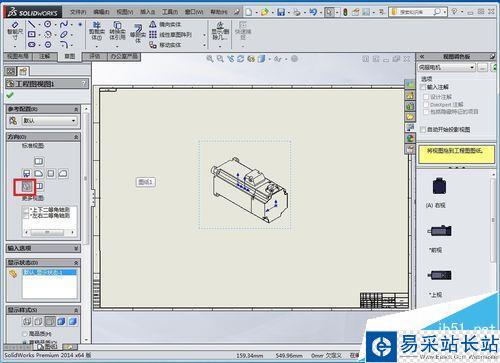 4、進入“工程圖”界面,選擇右側(cè)的“等軸測”,再選擇左側(cè)確認。