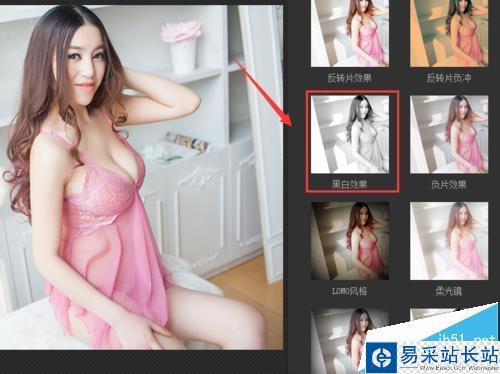 5、點擊黑白效果選項后,我們的照片自動應用該效果,如圖所示: