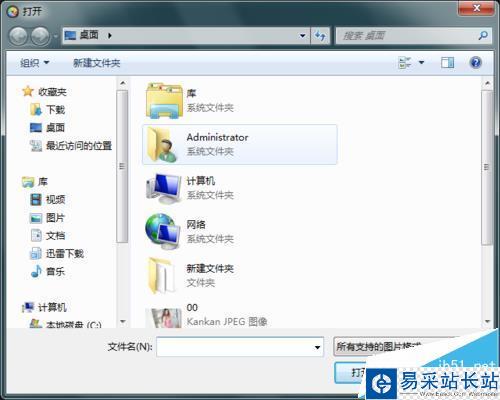 2、在這個界面上找到打開選項后,點擊打開選項,彈出打開圖片對話框,如圖所示: