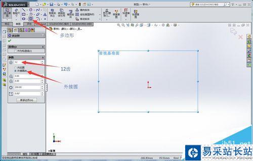 2、點(diǎn)擊多邊形,邊數(shù)填寫12,選擇外接圓,圈的大小隨意,后面會修改