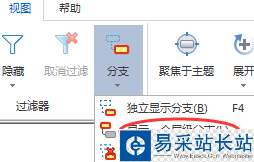 2)在視圖選項卡上,過濾器組里,點擊分支下拉按鈕,選擇獨立顯示分支或者按F4鍵。