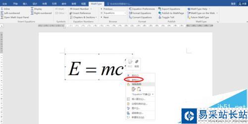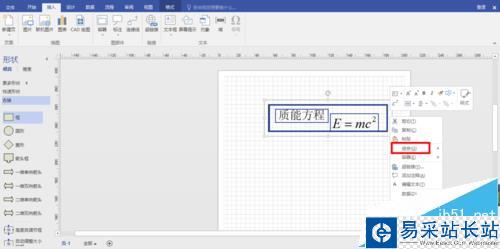 2、我們以質(zhì)能方程為例,比如我們要在visio中寫入質(zhì)能方程,接下來,復(fù)制公式,在公式上右鍵,然后點(diǎn)擊復(fù)制,也可以直接Ctrl+C。