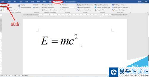 1、打開word 2016軟件,可以看到有mathtype的加載項(xiàng),編輯我們要寫在visio中的公式。