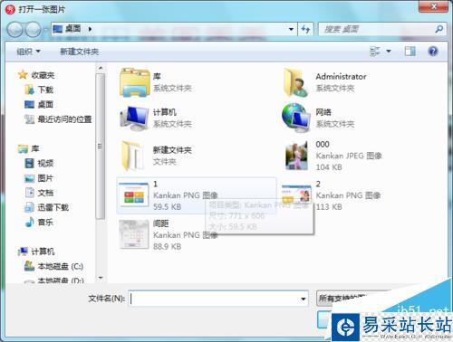 3、點擊打開選項后,彈出打開一張圖片對話框,如圖所示: