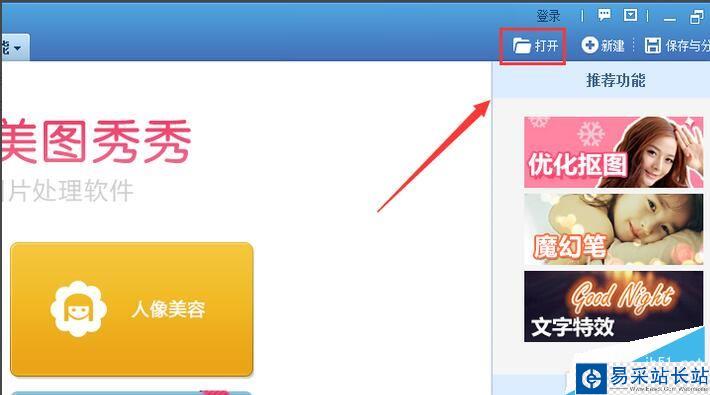 打開美圖秀秀這款操作軟件,進入美圖秀秀的操作界面,如圖所示: