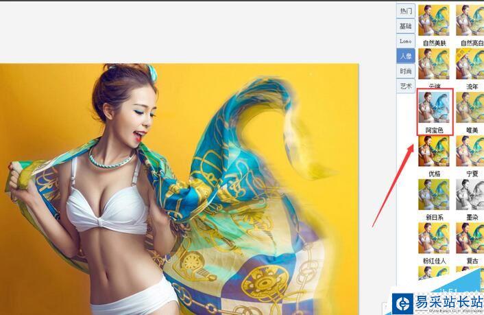 點擊人像選項后,在其選擇區域里找到阿寶色選項,如圖所示: